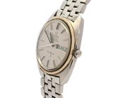 OMEGA, Constellation, "C", Chronometer, s.k. "Linen Dial", Cal 751, Serie nr. 27630827, Boett nr. 168.029 (S.F.), herrur, 35 mm, stål/vitguld, automatisk, plexiglas, dag (engelska), datum, defekt (går ej, servicebehov), räfflad glasring, originallänk, viklås, Ref nr. 1040/518, ca 1968.