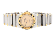 OMEGA, Constellation, Cal 1455, Serie nr. 53352916, Ref nr. DB 795.1080, Boett nr. 795.1080, damur, 22,5 mm, stål/guld, quartz, safirglas (repor), skadad urtavla, integrerad originallänk (halvstav), viklås, Ref nr. 6104/465, cert, januari 1992, box (skadad).