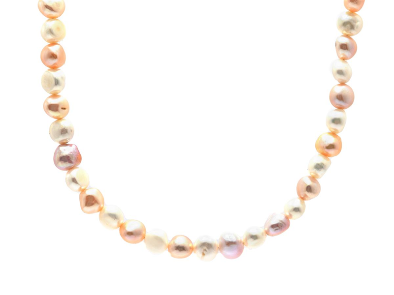 PÄRLCOLLIER, odlade sötvattenspärlor ca 8 mm, vita och rosa i olika nyanser, lås i sterlingsilver, trädd på vajer, längd 62 cm.