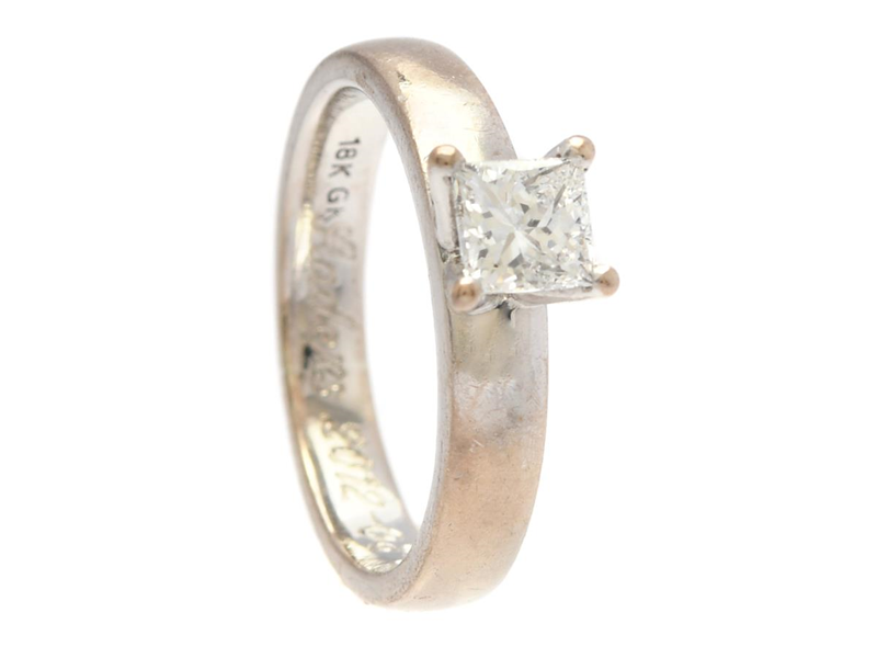 ENSTENSRING, 18K vitguld, prinsesslipad diamant 0,45 ct, TW(G)/VS, storlek 15,75 mm, vikt 4,5 g.