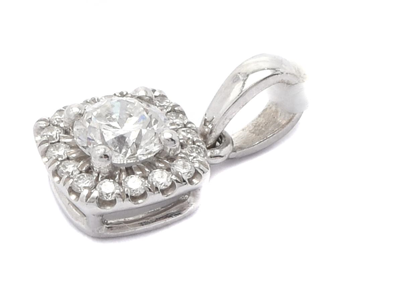 Hänge 18K i Vitguld 1g, Höjd:10mm Bredd:6mm, med troligen syntetiska diamanter