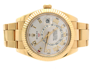 Rolex Oyster Perpetual Sky Dweller, herrur, guld 18K, 42mm, automatisk, safirglas (nagg i vänstra hörnet), Oysterlänk i guld 18K, repig, viklås, repig/naggad bakboett, refnr: 326938, snr: 9R015058, extra länkbitar, certifikat feb 2018, box, ytterkartong