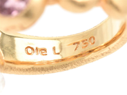 OLE LYNGGAARD, ring, Bubbles, 18K guld, rosa turmaliner, 3 briljantslipade diamanter 0,11 ctv, ca TW/VS, Charlotte Lynggaard, stl 16,5 mm, vikt 14,4 g, enstaka stenar har nagg.