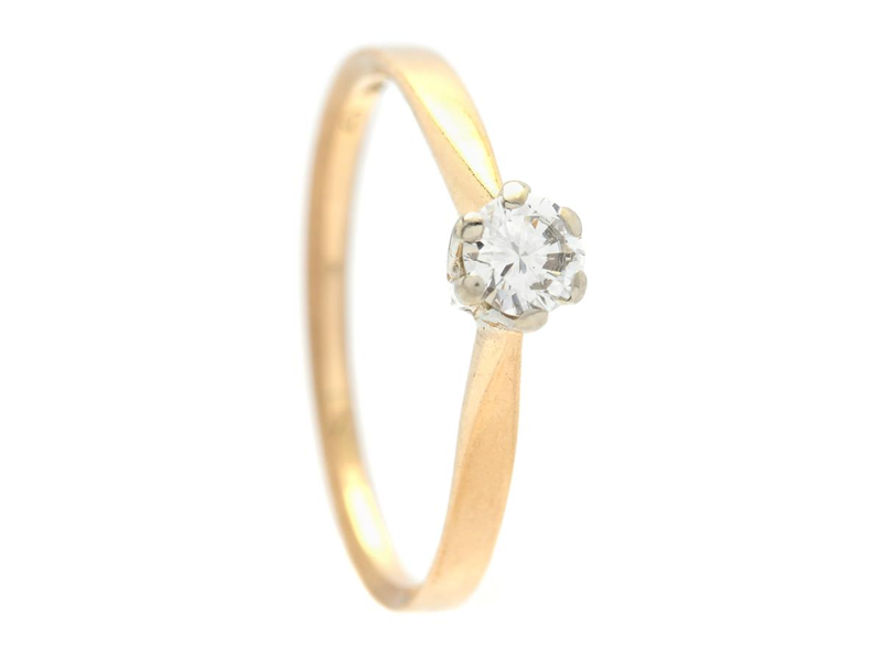 ENSTENSRING, 18K guld, briljant 0,18 ct enl gravyr, ca TW/VVS stl 16,5 mm, vikt 1,6 g.