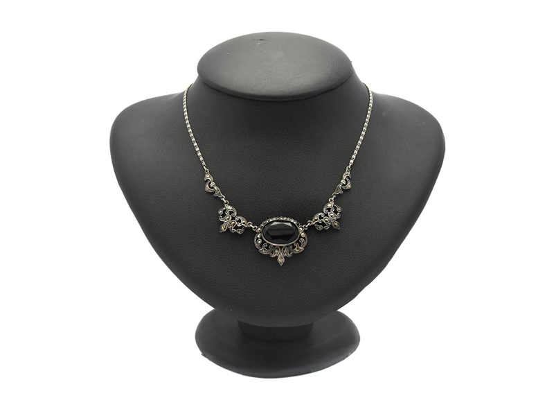 COLLIER, sterlingsilver, onyx, markasiter, längd 49 cm, vikt 11,4 g.