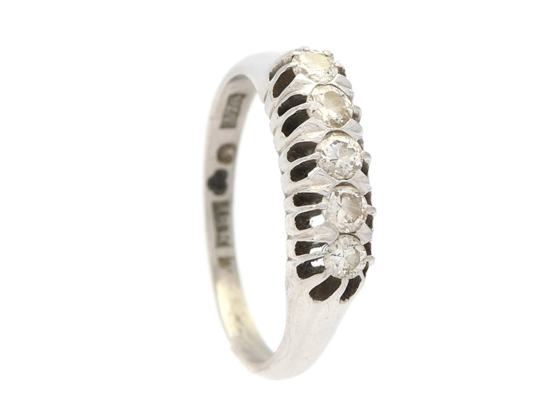 RING, 18K vitguld, 5 briljantslipade diamanter ca 0,38 ctv, ca W-Cr/SI, stl 16,5 mm, vikt 3,8 g.