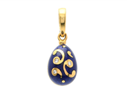 FABERGÉ, hänge/ägg i 18K guld och blå emalj, Victor Mayer, 3 briljanter 0,03 ctv, ca W/VS-SI, Nr 449 av 500, certifikat, originaletui och box,