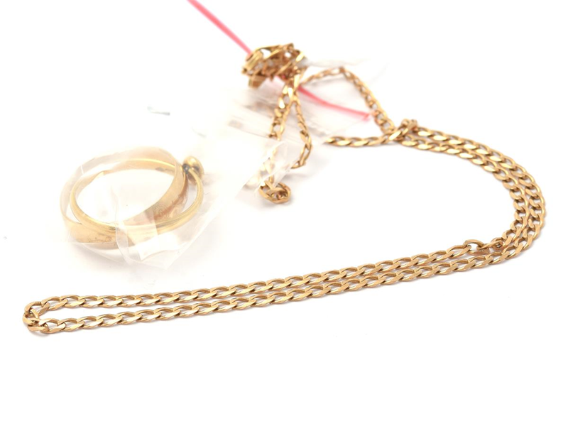 Parti guld 18K, 8,9g, med sten, defekt skevt