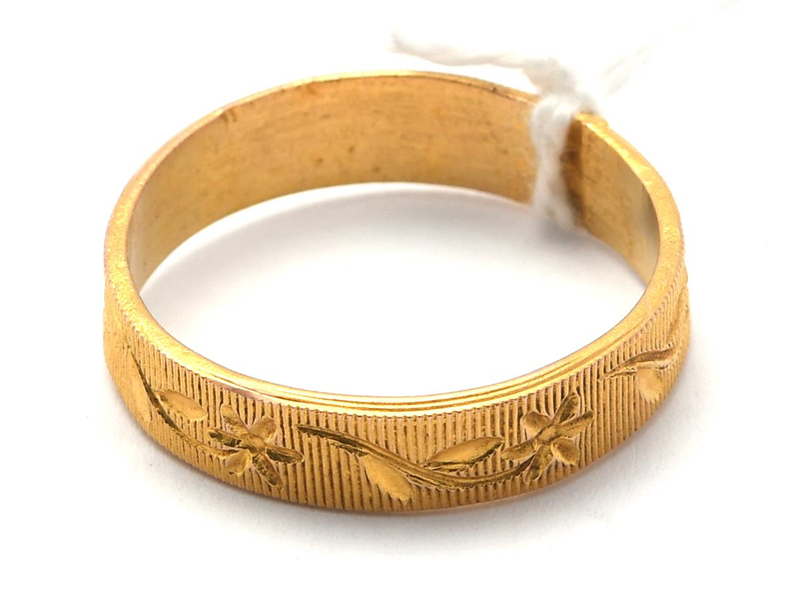Förlovningsring 9K, 3,1g, Ø 19, bredd 5mm, defekt ej rund