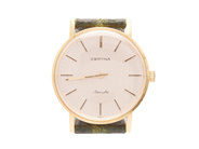 Certina New Art, armbandsur, 18K, 34mm, manuell, saknar sekundvisare, graverad, läderarmband
