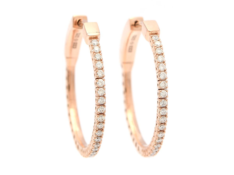 ÖRRINGAR, 18K roséguld, 40 briljantslipade diamanter ca 0,37 ctv, ca TW-W/VVS-VS, stift, diameter 25 mm, vikt 5,7 g.