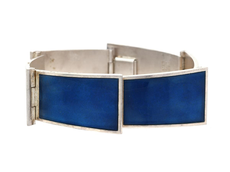 DAVID ANDERSEN, armband, sterlingsilver, blå emalj, Norge, längd 19 cm, vikt 73,2 g.
