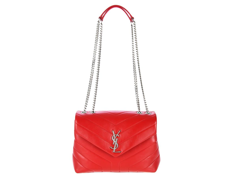VÄSKA, SAINT LAURENT, Loulou Bag Small, rött quiltat skinn, silverfärgad beslag, 23x17x7 cm, dustbag,
