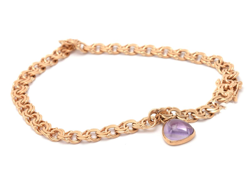 Armband Bismarck 18K 11,4g med 1 berlock med sten, längd: 19,5cm bredd: 5mm