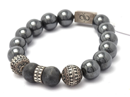 Armband, Aurum Brothers, S800/naturliga stenar,Ø12mm, USA, Classic Hematite, längd: 18cm, gummiband