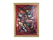 Veijo Valmu (Finland, 1929-1995) Olja på duk, 59x83cm, abstrakt komposition, i flerfärgad träram, visst slitage.Ej visning