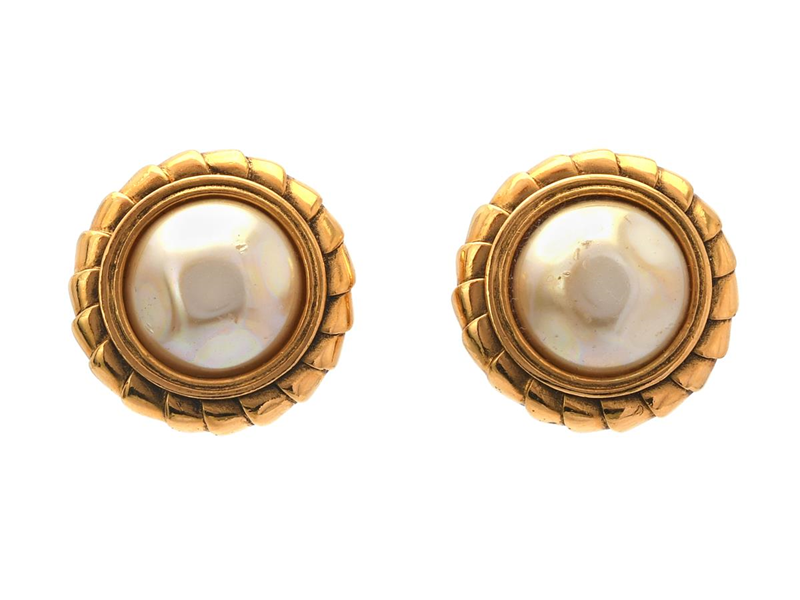 ÖRHÄNGEN, CHANEL, vintage, clips, imitations pärla, nagg på pärla, guldfärgade, 2 cm, vikt 20,17g, märkt " Chanel Made In France 2822."