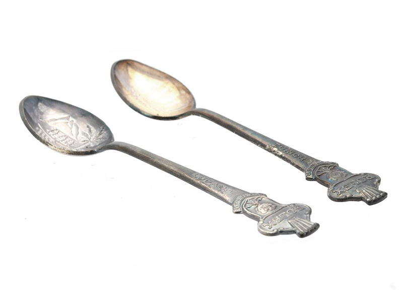 TESKEDAR, 2 st. Rolex / Bucherer, (Zürich/Lugano), vitmetall, ca 1965.