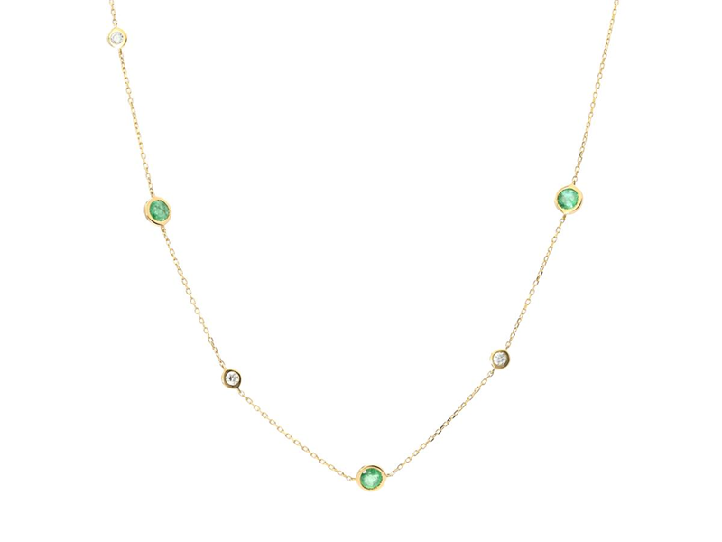 COLLIER, 18K guld, 3 smaragder ca 0,76 ctv, 3 briljantslipade diamanter ca 0,16 ctv, längd 55 cm, vikt 2,2 g, smaragder med sprickor.