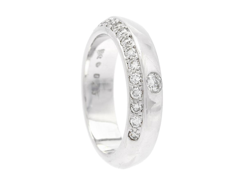 RING, 18K vitguld, 17 briljantslipade diamanter 0,35 ctv enligt gravyr, ca TW-Cr/VS-P, stl 17 mm, vikt 8,5 g, en diamant saknas, enstaka diamanter med nagg.