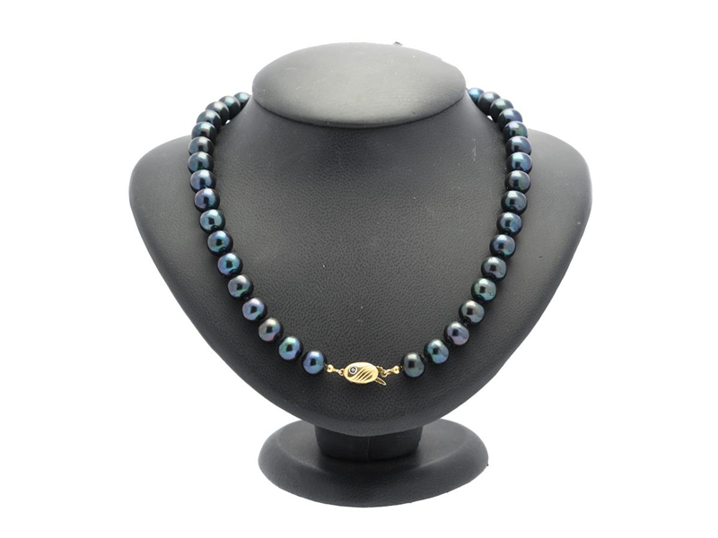 PÄRLCOLLIER, odlade sötvattenspärlor, pärlor ca 10 mm, något off round, färgade, lås i 18K guld, längd 45 cm.