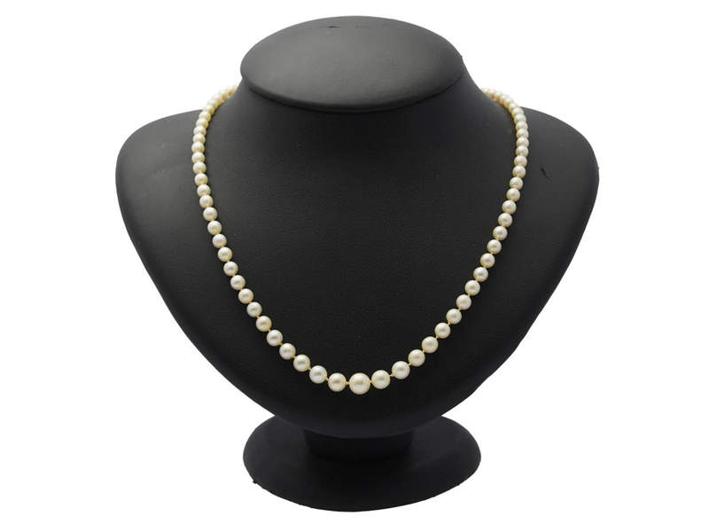 PÄRLCOLLIER, odlade pärlor, doserat, lås i silver med paste, längd 48 cm, vikt 13,8 g.