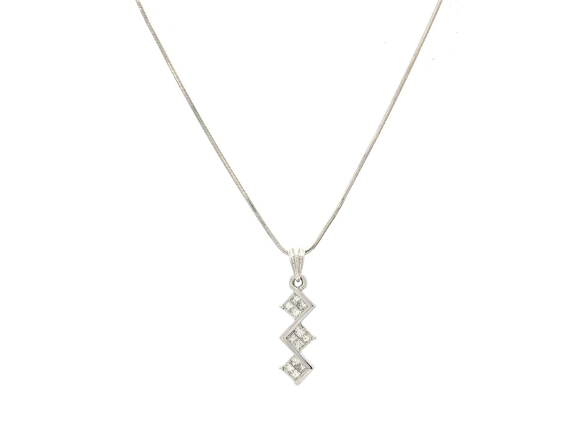 HÄNGE MED KEDJA, 18K vitguld, 12 prinsesslipade diamanter ca 0,30 ctv ca W/SI, ormlänk, längd 45 cm, vikt 4,0 g.