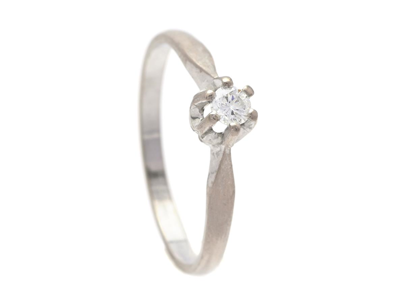 ENSTENSRING, 18K vitguld, briljantslipad diamant ca 0,14 ct, ca W/SI, stl 18,25 mm, vikt 2,4 g.