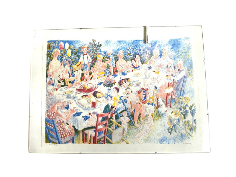 Erik Haamer (1908-1994) Färglitografi, Födelsedagskalaset signerad och numrerad 42/200, 62x45cm, i glasram, skick: små veck , ej visning