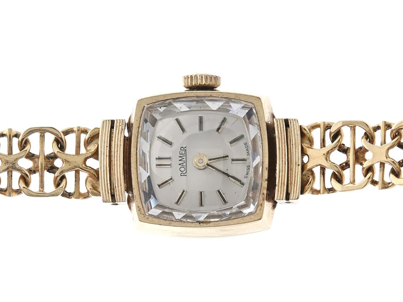 Roamer 14K, damur, manuell, plastglas, 15mm, med doserad X-länk med stav i 18K Bruttovikt 18,5g