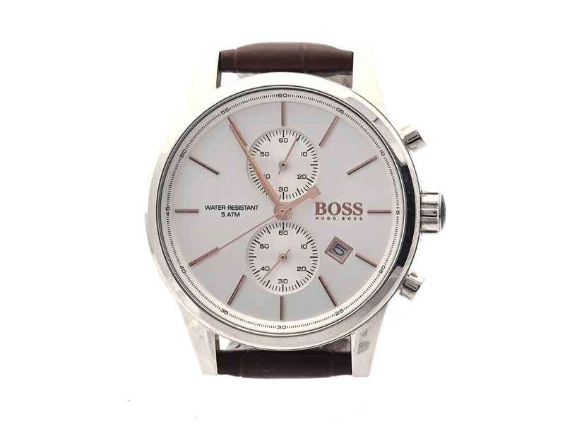 Armbandsur HUGO BOSS HB.275 Ø41mm, stål, safirglas, kvartsur med kronograf, datum och läderarmband, i originalkartong (saknar kudde)