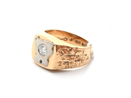 Ring tvåfärgad 18K 10,8g med sten och diamant 1x0,35ct Ø17½