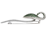 BROSCH, 18K vitguld, tsavoriter ca 4,0 ctv, briljantslipade diamanter ca 3,20 ctv, ca TW-Cr/VS, längd 80 mm, vikt 17,6 g.