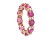 RING, 18K guld, 11 ovalslipade rubiner ca 4,18 ctv, 165 briljantslipade diamanter ca 1,14 ctv ca TW-TCr/SI-P, 17,25 mm, vikt 3,4 g, enstaka diamanter med skador och nagg.
