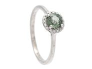 CARMOSÉRING, 18K vitguld, grön safir ca 0,87 ct, briljantslipade diamanter ca 0,08 ctv, ca TW-Cr/SI-P, stl 18,5 mm, vikt 3,0 g, safiren har nagg.