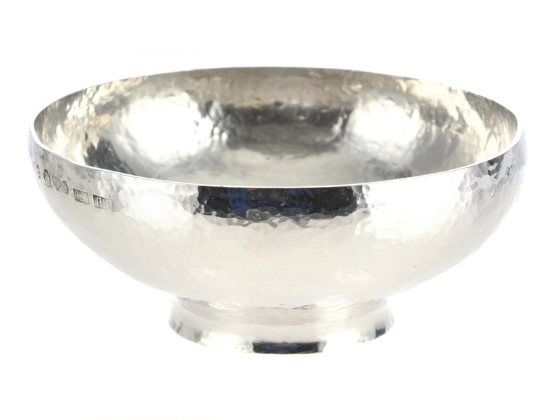 SKÅL, sterlingsilver, hamrad yta, Hans Wigardt, Stockholm 1976, höjd 5 cm, diameter 11,5 cm, vikt 208,2 g.