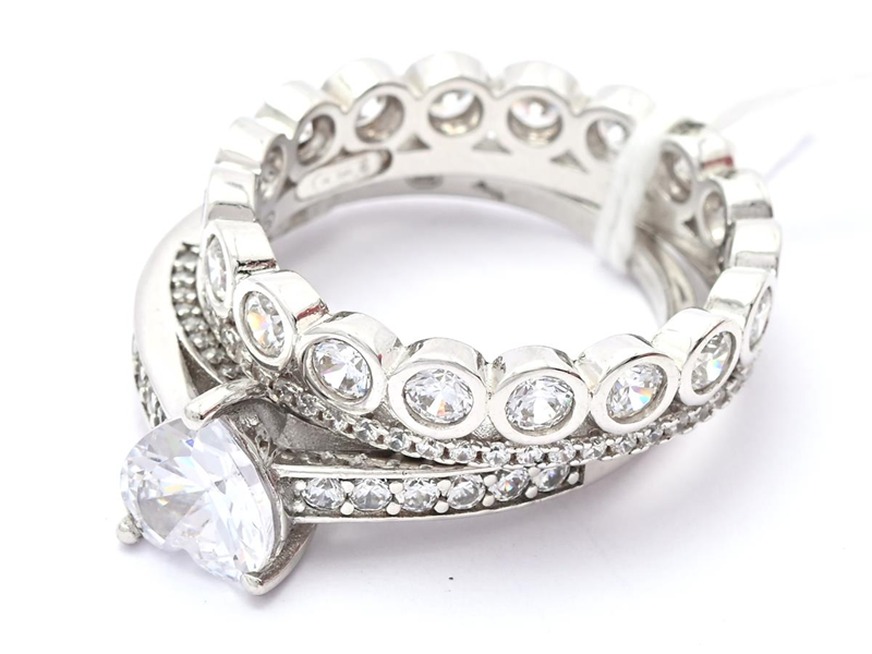 Två ringar S925 brv 7,9g. En ring med hjärtformad sten och en ring dubbel, båda har storlek Ø18½.