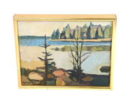 Rolf Ingvar Karlsson (1938-) ''Insjö'', olja på pannå, 23,6x18,5cm