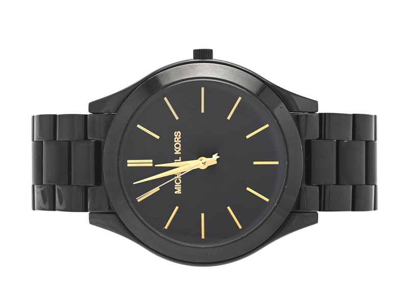 Michael Kors Slim Runway quartz armbandsur svart stål, Ø40mm MK-3221, repa på glas, Øca 17cm, färgskav på länk, i box