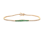 ARMBAND, 18K guld, 9 smaragder ca 0,48 ctv, briljantslipade diamanter ca 1,25 ctv, ca TW-TCr(G-I)/SI-P, längd 17,5 cm, vikt 6,4 g, smaragder med nagg och mindre sprickor, någon enstaka diamant med nagg.