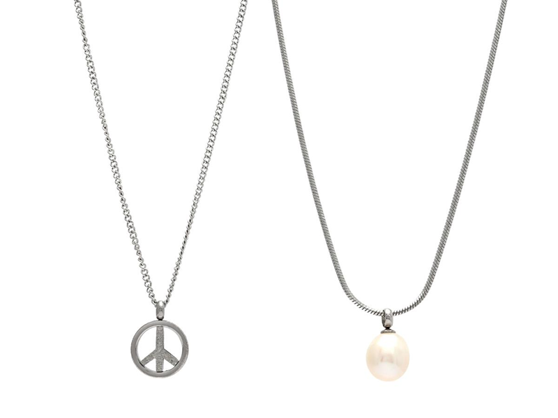 HÄNGE MED KEDJA, "astrid&agnes", 2 stycken, stål, peace tecken, kedjans längd 38-44,5 cm, pärlhänge, kedjans längd 71-79,5 cm, vikt 12,1 g.