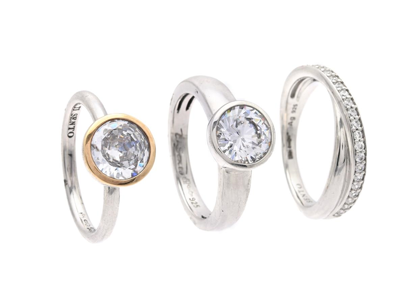 TI SENTO, ringar, 3 stycken, sterlingsilver, vita glas stenar, stl ca 17,25 mm, vikt 12,1 g.