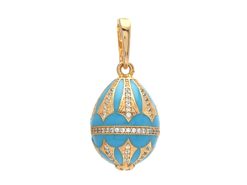 HÄNGE, ägg, förgyllt sterlingsilver, turkos emalj, cz, öppningsbar ögla, mått 22,0 x 14,0 mm, vikt 7,7 g.