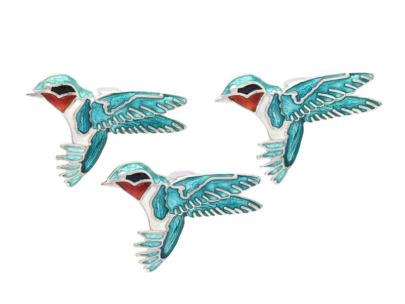 3 HÄNGEN, sterlingsilver, emalj i blått, vitt och rött, kolibri 25 x 20 mm, vikt 5,8 g.