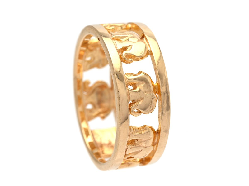 RING, 14K guld, elefanter, bredd 8 mm, stl 18,5 mm, vikt 5,3 g.