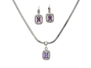 SMYCKESET, collier och örhängen, rostfritt stål, lila cubic zirkoner, kedjans längd 40-45 cm, örhängenas höjd 16 mm.