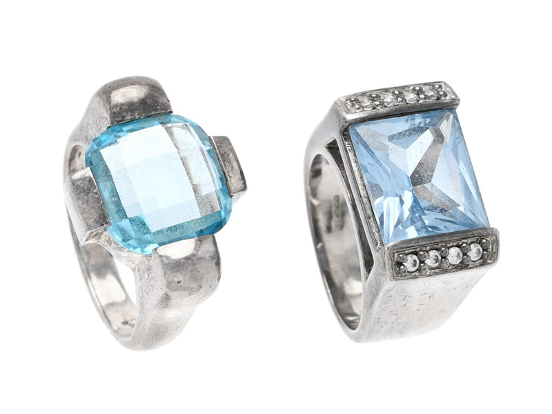 2 RINGAR, silver, glasstenar, stl 15,75 och 17,0 mm, totalvikt 18,7 g.