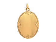 MEDALJONG, 18K guld, öppningsbar, arbetad yta, 1920-tal, mått 35 x 21 mm, vikt 5,9 g, gravyr.