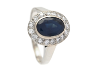 CARMOSÉRING, 18K vitguld, ovalslipad safir ca 1,91 ct, 16 åttkantslipade diamanter ca 0,32 ctv, stl 16,5 mm, vikt 4,1 g, safiren med nagg.
