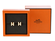 HERMÈS. ÖRHÄNGEN, Mini Pop H earrings, vitlackerad metall, guldpläterade beslag, höjd 0,9 cm, bredd 0,7 cm, vikt 3,2 g, made in France, ask. Very Good Condition.